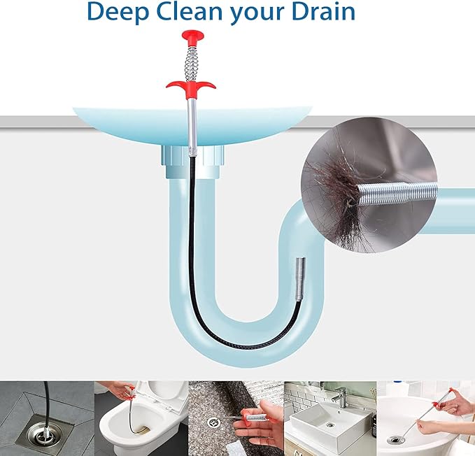 قطعتين Sink Snake Flexible Grabber Pickup Tool Retractable 4 Claw Retriever Stick Drain Clog Remover